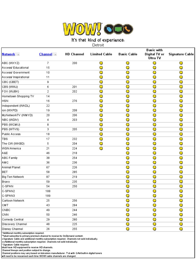 Over the Air TV Listings. Find out when and where you can watch WOW. Cable TV Reference Guides that you can download or read in PDF format for all WOW.